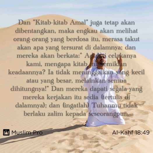 Posted on Mei 5, 2023 oleh ibrahimkunjimohamadJangan Perkecilkan Dosa Kecil Petikan daripada Al-Quran, Al-Kahf 18:49 #muslimpro https://go.muslimpro.com/H524 Kongsikan: Share on X (Opens in new window) X Kongsikan melalui Facebook (Opens in new window) Facebook Share on LinkedIn (Opens in new window) LinkedIn Like Memuat...